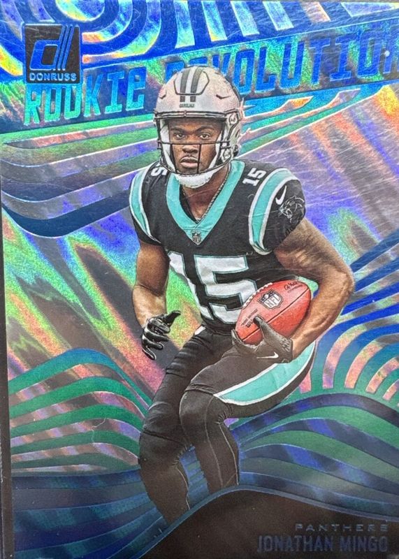 This card is 1 of 31 Jonathan Mingo's card variations in the 2023 Donruss set being tracked by Sports Card Investor, including Portrait, Portrait - Studio Series /100, Bomb Squad, Bomb Squad Autographs (/75), and Optic Rated Rookie Preview Autographs.