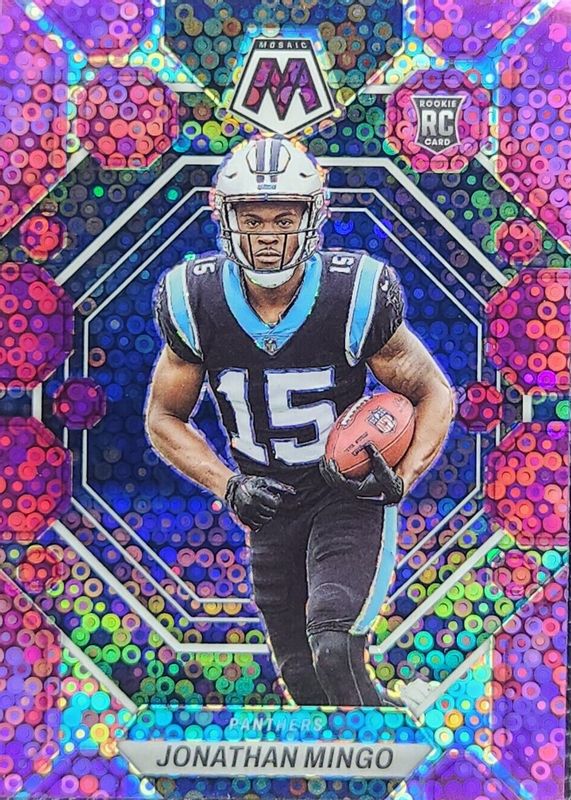 2023 Panini Mosaic Jonathan Mingo Purple Disco Prizm /50 #336 Rookie Panthers