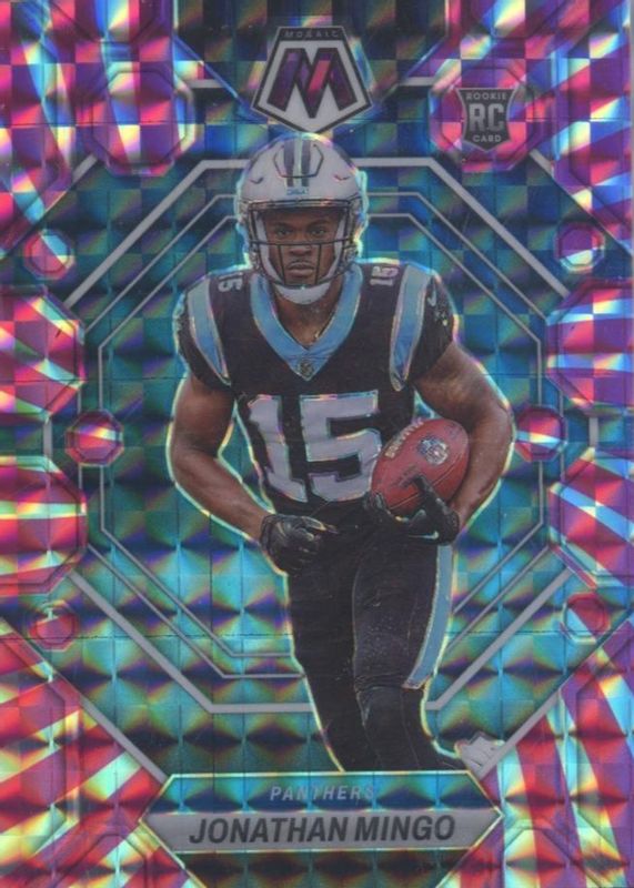 The Jonathan Mingo 2023 Mosaic #336 Pink Swirl /11 Rookie card in Raw condition has not changed in price in the last 30 days and was last sold for $12.50 .