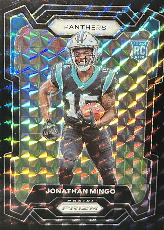 This card is 1 of 77 Jonathan Mingo's card variations in the 2023 Prizm set being tracked by Sports Card Investor, including Base, Disco, Green, Green Ice, and Green Wave.