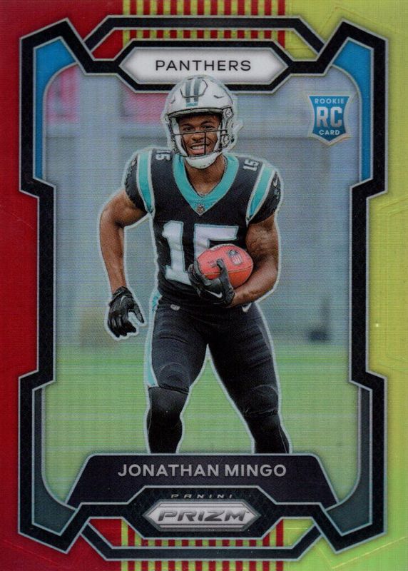 Best Prices Available For Sale of Jonathan Mingo 2023 Prizm #312 Red & Yellow (Rookie) /8