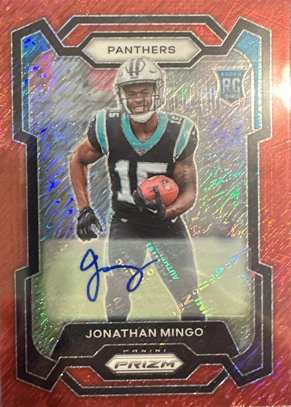 2023 Panini Prizm Jonathan Mingo #312 Red Shimmer Rookie AUTO 25/35 Panthers JB2
