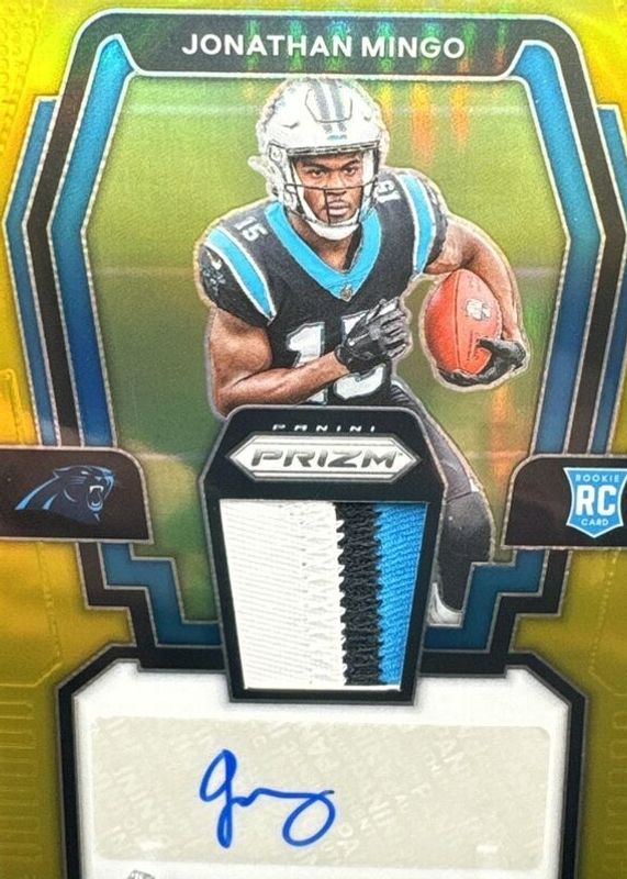2023 Prizm Jonathan Mingo Gold RPA /10 RC Panthers Rookie Patch Auto NFL