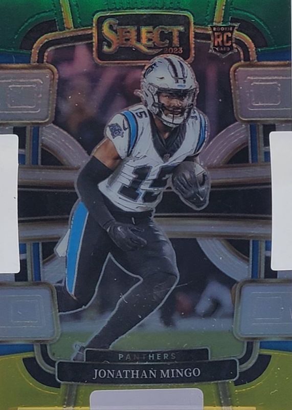 JONATHAN MINGO 2023 PANINI SELECT GREEN YELLOW DIE CUT #16 RC CAROLINA PANTHERS