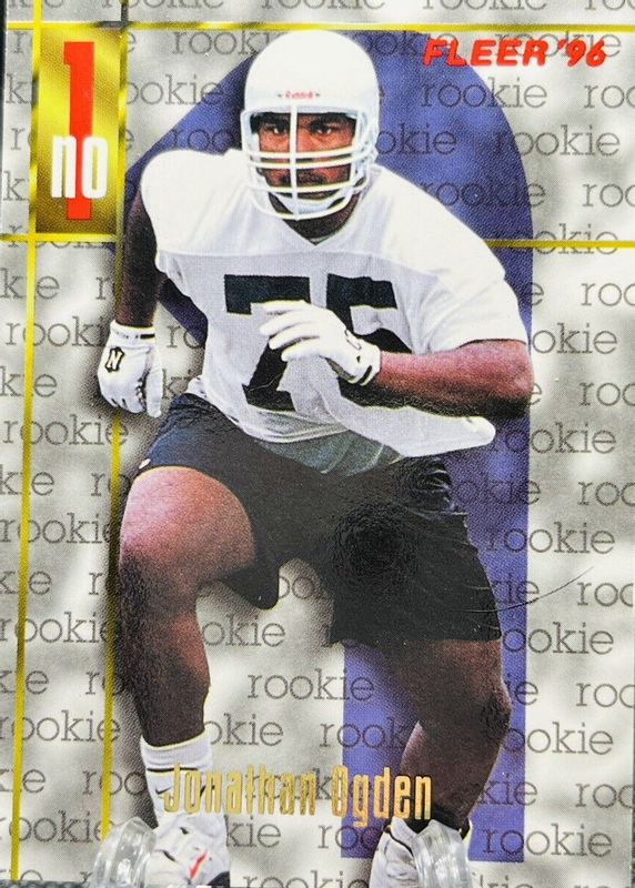 The Jonathan Ogden 1996 Fleer #173 Base Rookie card in Raw condition has not changed in price in the last 30 days and was last sold for $1.49 .