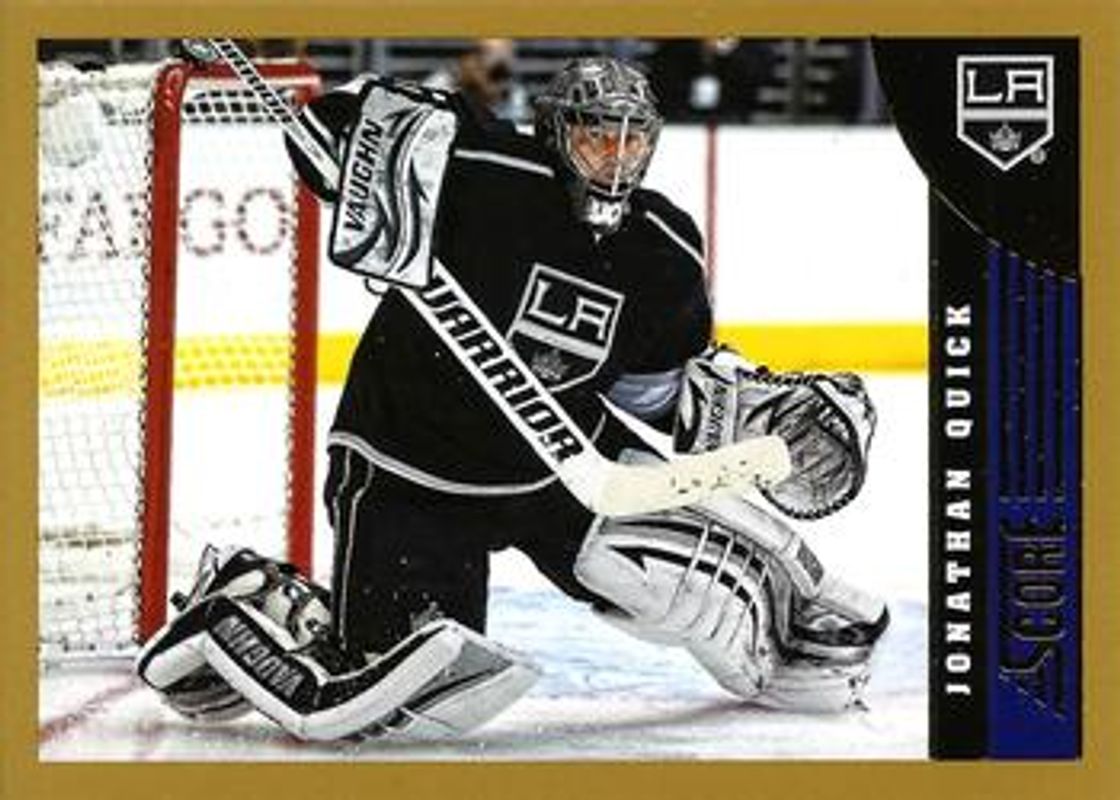 The Jonathan Quick 2013 Score #219 Gold card is 1 of 7 Jonathan Quick's card variations in the 2013 Score set being tracked by Sports Card Investor, including Base, Black, Red, Red Back, and Netcam.