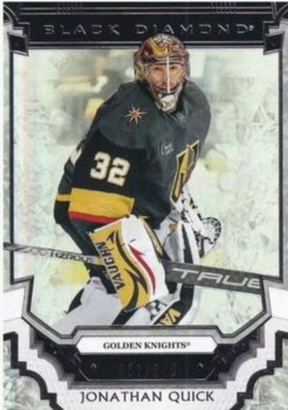 The Jonathan Quick 2023 Upper Deck Black Diamond #BDB-JQ Base /349 card is 1 of 8 Jonathan Quick's card variations in the 2023 Upper Deck Black Diamond set being tracked by Sports Card Investor, including Red /75, Blue /25, Pure Black Auto /25, Green /10, and Diamond Relics /5.