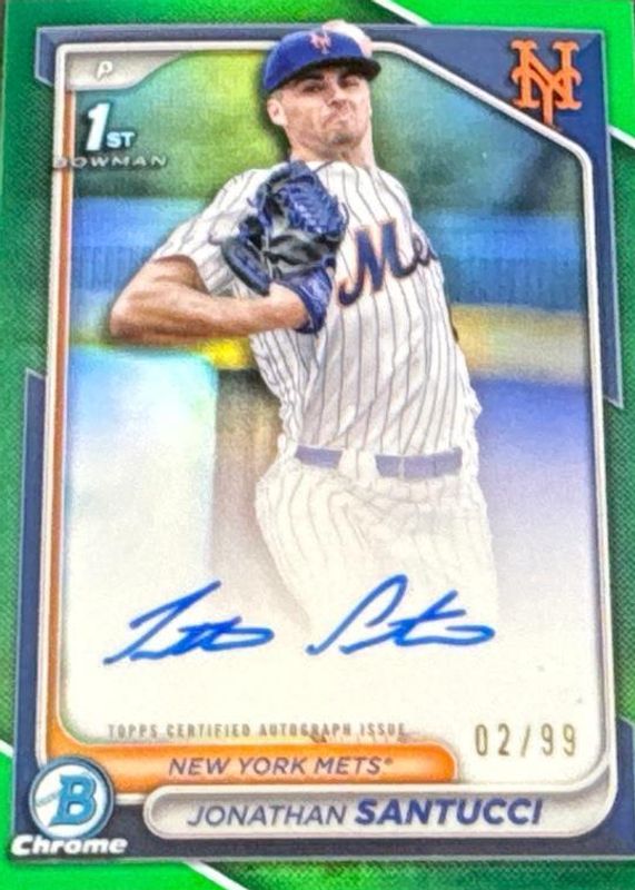 2024 Bowman Draft Jonathan Santucci Chrome Auto Green Refractor 1ST #74/99 Mets
