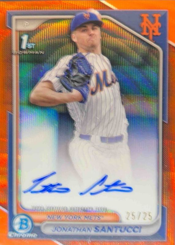 2024 Bowman Draft Chrome JONATHAN SANTUCCI 1ST ORANGE WAVE AUTO 23 /25 Mets