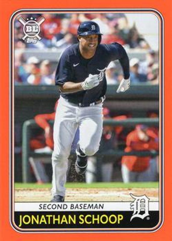 The Jonathan Schoop 2020 Topps Big League #7 Orange card is 1 of 9 Jonathan Schoop's card variations in the 2020 Topps Big League set being tracked by Sports Card Investor, including Base, Blue, Rainbow Foil /100, Black & White /50, and Base 5x7 /49.