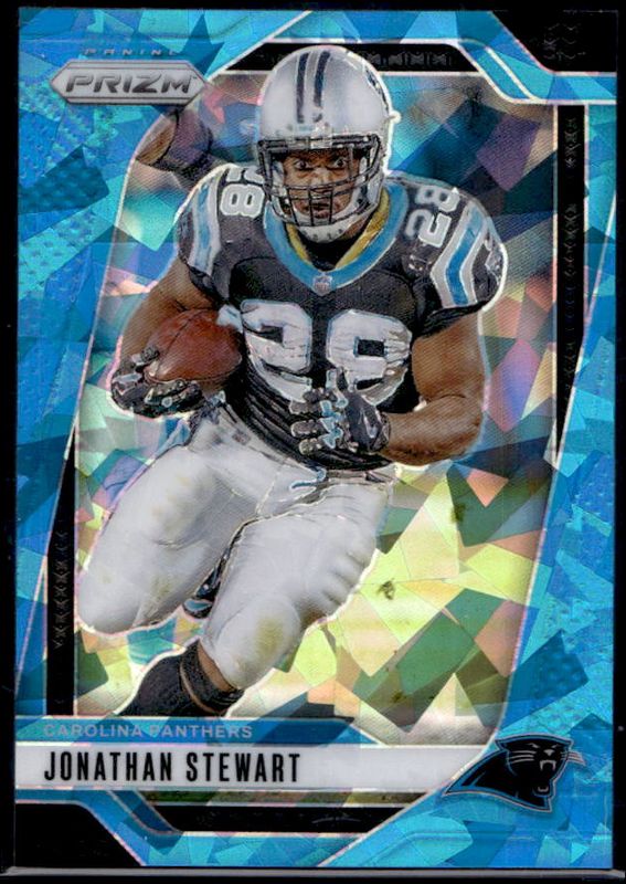 The Jonathan Stewart 2024 Prizm #45 Blue Ice /99 card is 1 of 84 Jonathan Stewart's card variations in the 2024 Prizm set being tracked by Sports Card Investor, including Base, Choice Blue Yellow Green, Choice Silver, Disco, and Green.
