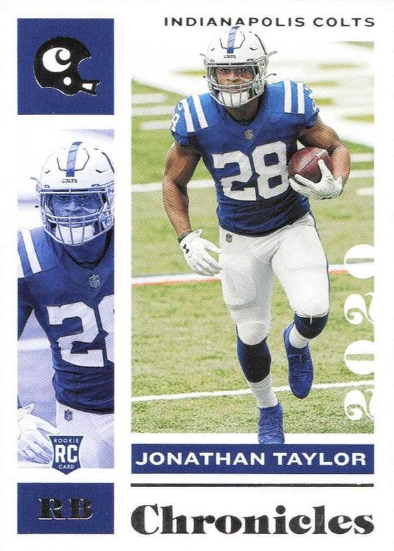 The Jonathan Taylor 2020 Chronicles #42 Base Rookie card in Raw condition has moved down -$3.01 (-60.2%) in the last 30 days and was last sold for $1.99 .