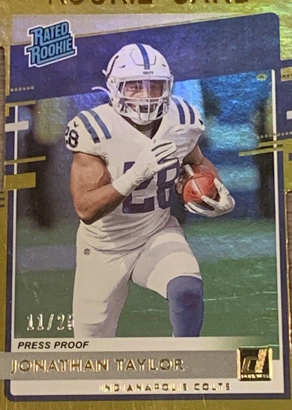 2020 Donruss Jonathan Taylor Press Proof Die Cut Gold /25 Rookie RC. Rare SSP.