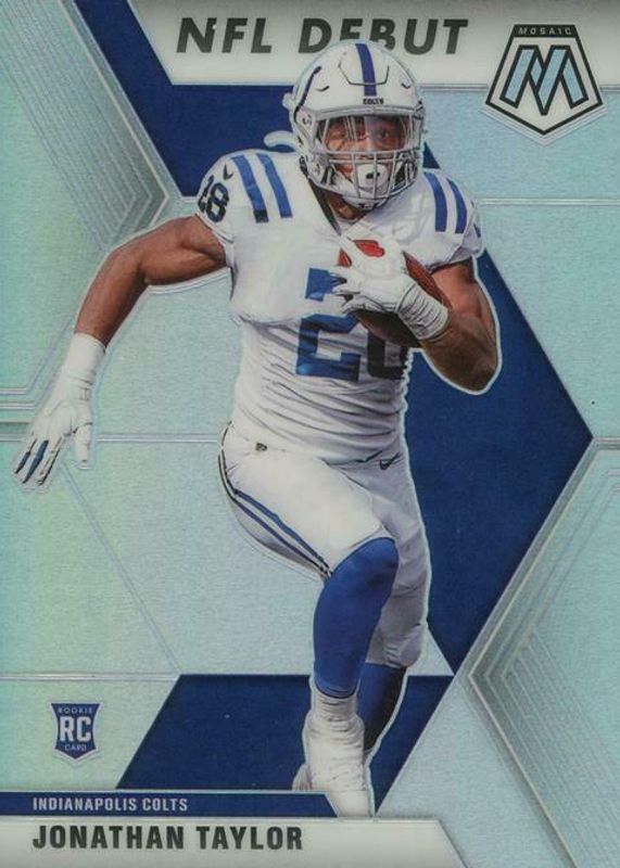 The Jonathan Taylor 2020 Mosaic #276 NFL Debut - Silver Rookie card in Raw condition has moved down -$0.71 (-35.5%) in the last 30 days and was last sold for $1.29 .