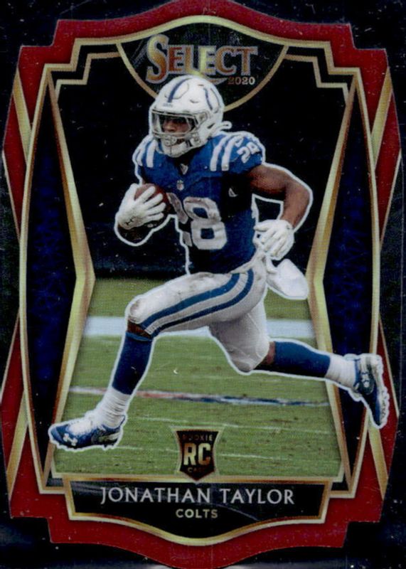 The Jonathan Taylor 2020 Select #153 Premier Level Maroon Die-Cut Rookie card in Raw condition has moved up $1.01 (+20.2%) in the last 30 days and was last sold for $6.00 .