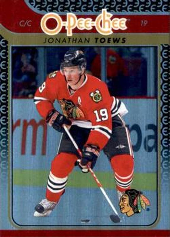 The Jonathan Toews 2009 O-Pee-Chee #19 Rainbow card is 1 of 10 Jonathan Toews' card variations in the 2009 O-Pee-Chee set being tracked by Sports Card Investor, including Base, Retro, Retro Blank Back, Retro Rainbow /100, and Canadian Heroes Autographs.