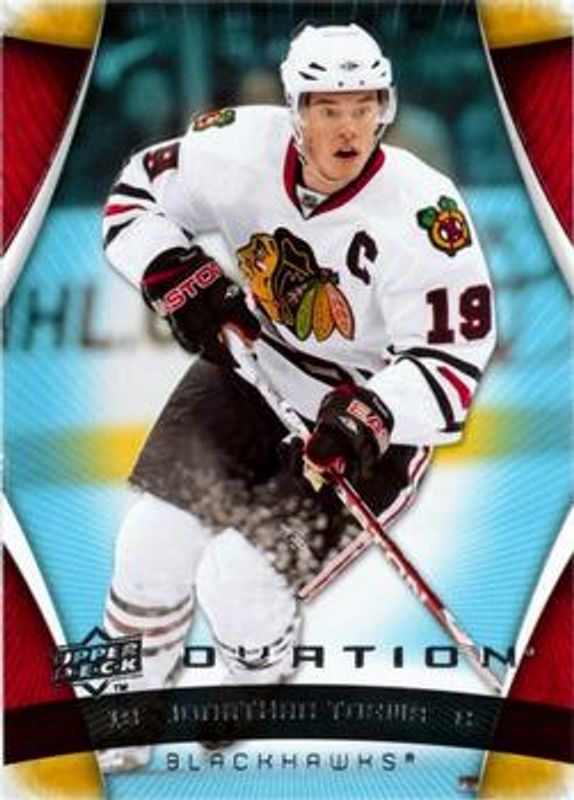The Jonathan Toews 2009 Upper Deck Ovation #30 Base card is 1 of 3 Jonathan Toews' card variations in the 2009 Upper Deck Ovation set being tracked by Sports Card Investor, including Spotlight, and Spotlight - Autographs.