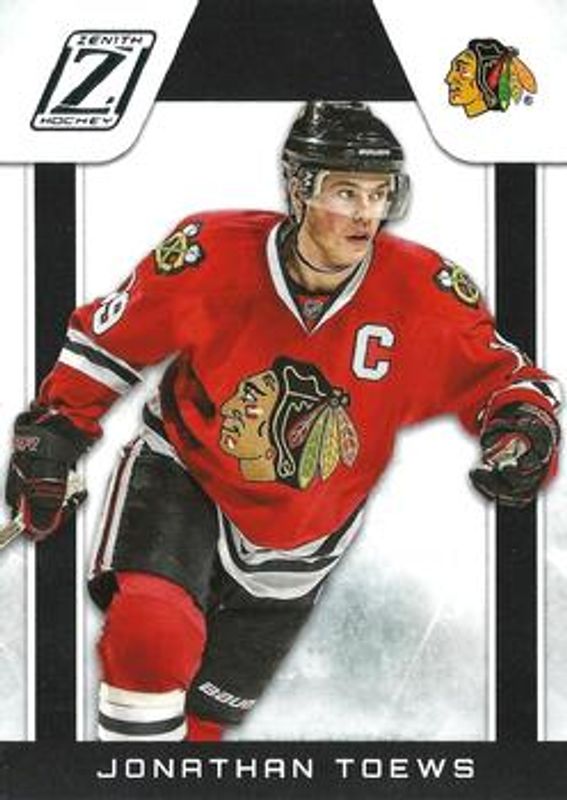 The Jonathan Toews 2010 Zenith #46 Base /999 card is 1 of 7 Jonathan Toews' card variations in the 2010 Zenith set being tracked by Sports Card Investor, including Red Hot, White Hot /25, Chasing the Cup, Z Team, and Z Team - Red Hot.