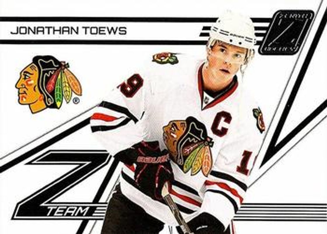The Jonathan Toews 2010 Zenith #7 Z Team card is 1 of 7 Jonathan Toews' card variations in the 2010 Zenith set being tracked by Sports Card Investor, including Base /999, Red Hot, White Hot /25, Chasing the Cup, and Z Team - Red Hot.