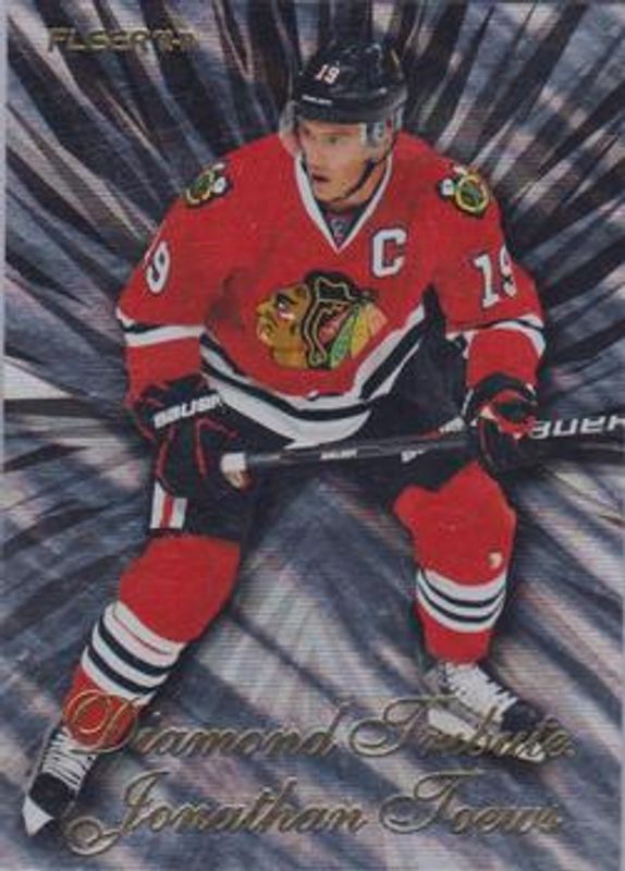 The Jonathan Toews 2012 Fleer Retro #3 Diamond Tribute card is 1 of 22 Jonathan Toews' card variations in the 2012 Fleer Retro set being tracked by Sports Card Investor, including Base, Autographs, 1992 Ultra, 1992 Ultra Autographs, and 1993 Ultra.