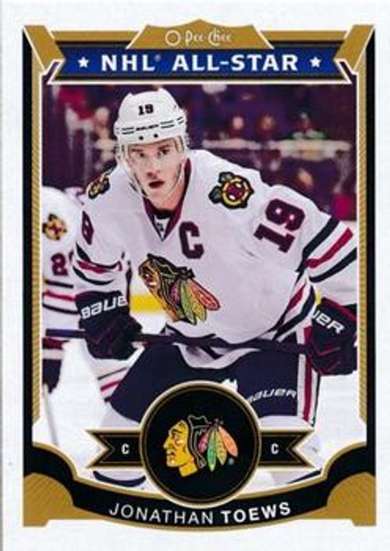The Jonathan Toews 2015 O-Pee-Chee #300 Base card is 1 of 13 Jonathan Toews' card variations in the 2015 O-Pee-Chee set being tracked by Sports Card Investor, including Rainbow, Red, Retro, Retro Blank Backs, and Rainbow Black /100.