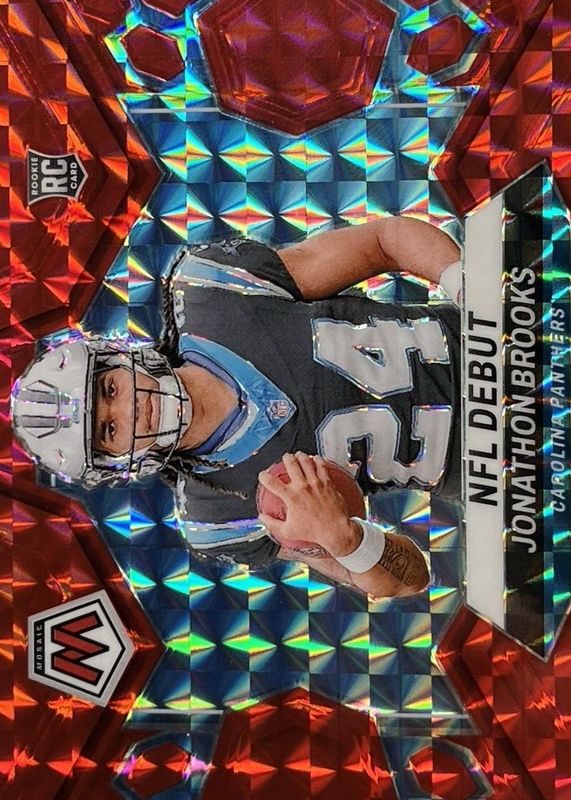 The Jonathon Brooks 2024 Mosaic #276 NFL Debut - Red Rookie card in Raw condition has not changed in price in the last 30 days and was last sold for $1.00 .