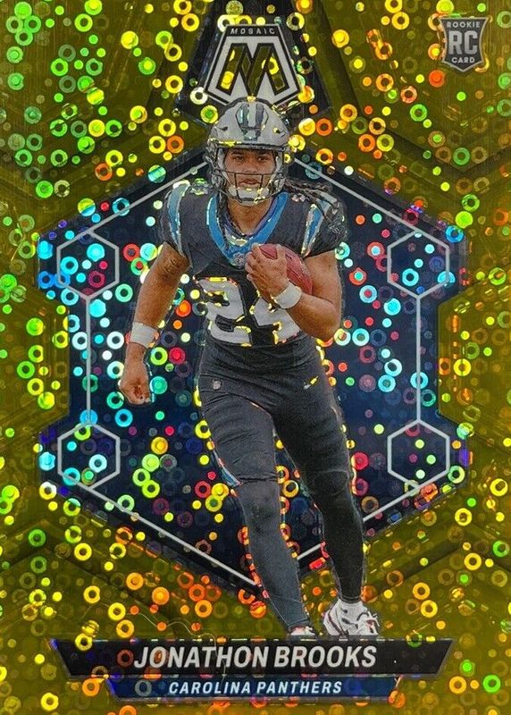 The Jonathon Brooks 2024 Mosaic #345 No Huddle Gold /10 Rookie card in Raw condition has not changed in price in the last 30 days and was last sold for $29.95 .