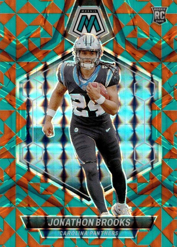 This card is 1 of 114 Jonathon Brooks' card variations in the 2024 Mosaic set being tracked by Sports Card Investor, including Base, NFL Debut, Green, Mosaic, and NFL Debut - Green.