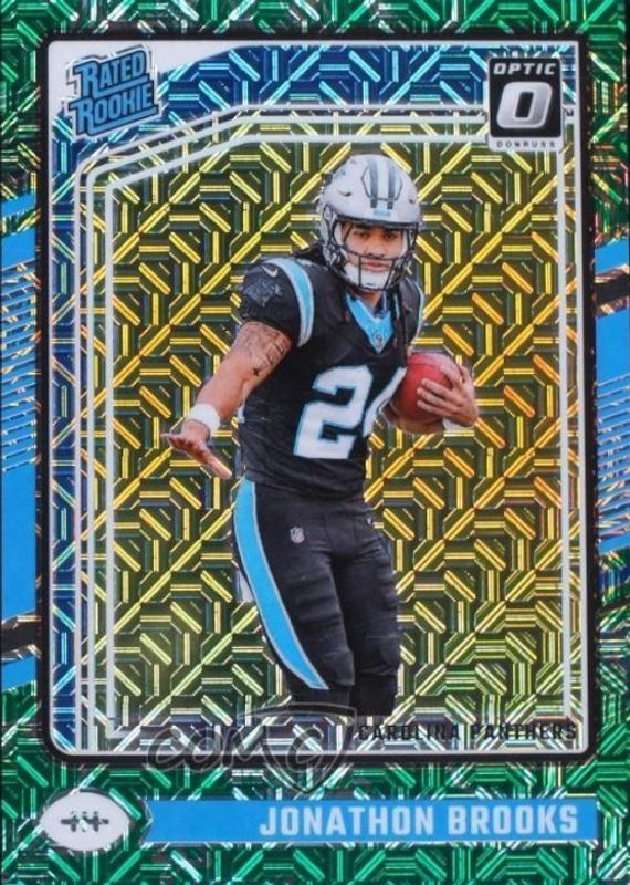 This card is 1 of 68 Jonathon Brooks' card variations in the 2024 Optic set being tracked by Sports Card Investor, including Base, Blue Hyper, Blue Scope, Green Hyper, and Green Velocity.