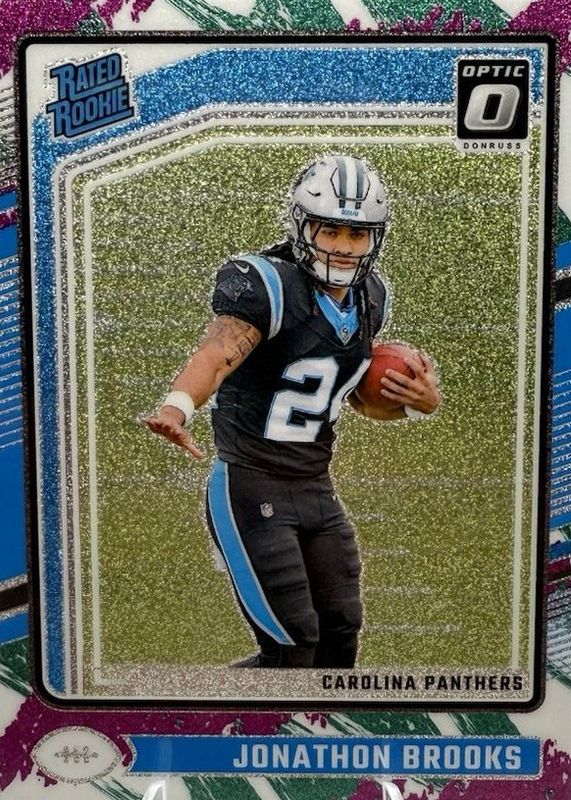 This card is 1 of 68 Jonathon Brooks' card variations in the 2024 Optic set being tracked by Sports Card Investor, including Base, Blue Hyper, Blue Scope, Green Hyper, and Green Velocity.
