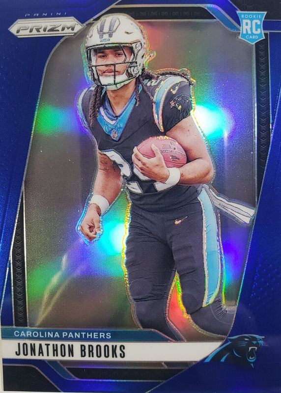 The Jonathon Brooks 2024 Prizm #357 Blue /(SSP) Rookie card in Raw condition has not changed in price in the last 30 days and was last sold for $20.00 .