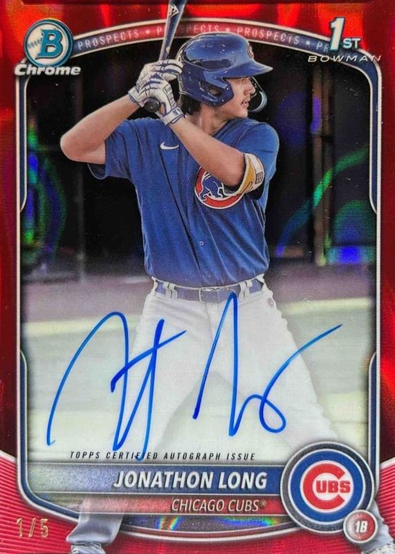 Jonathon Long 2025 Bowman #CPA-JLG Chrome Prospect Auto - Red Lava Refractor /5 (1st) RAW Price Guide