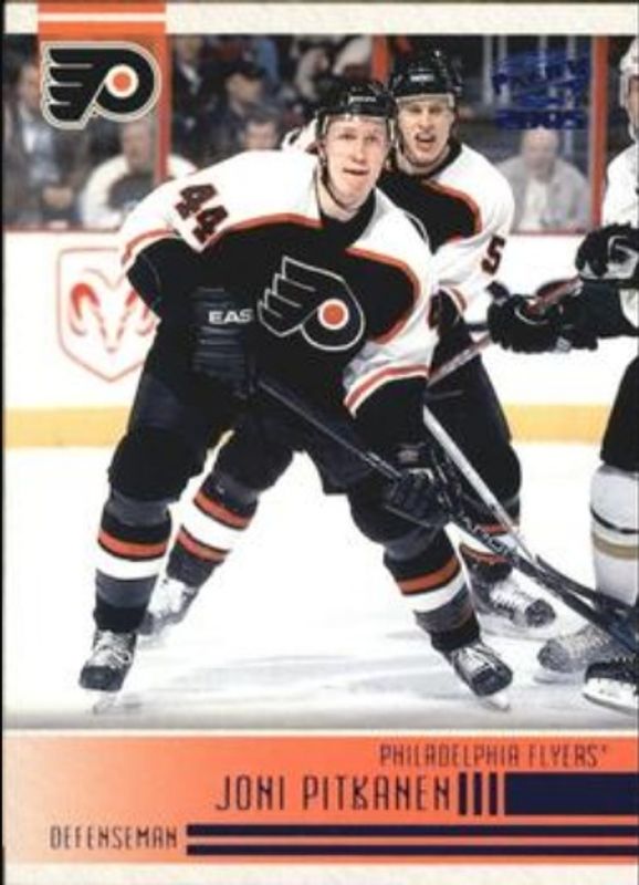 The Joni Pitkanen 2004 Pacific #196 Blue /250 card is 1 of 9 Joni Pitkanen's card variations in the 2004 Pacific set being tracked by Sports Card Investor, including Base, Red, Calder Collection /1500, Jerseys /850, and 2004 NHL All Star Fantasy Calder Collection - Gold /499.