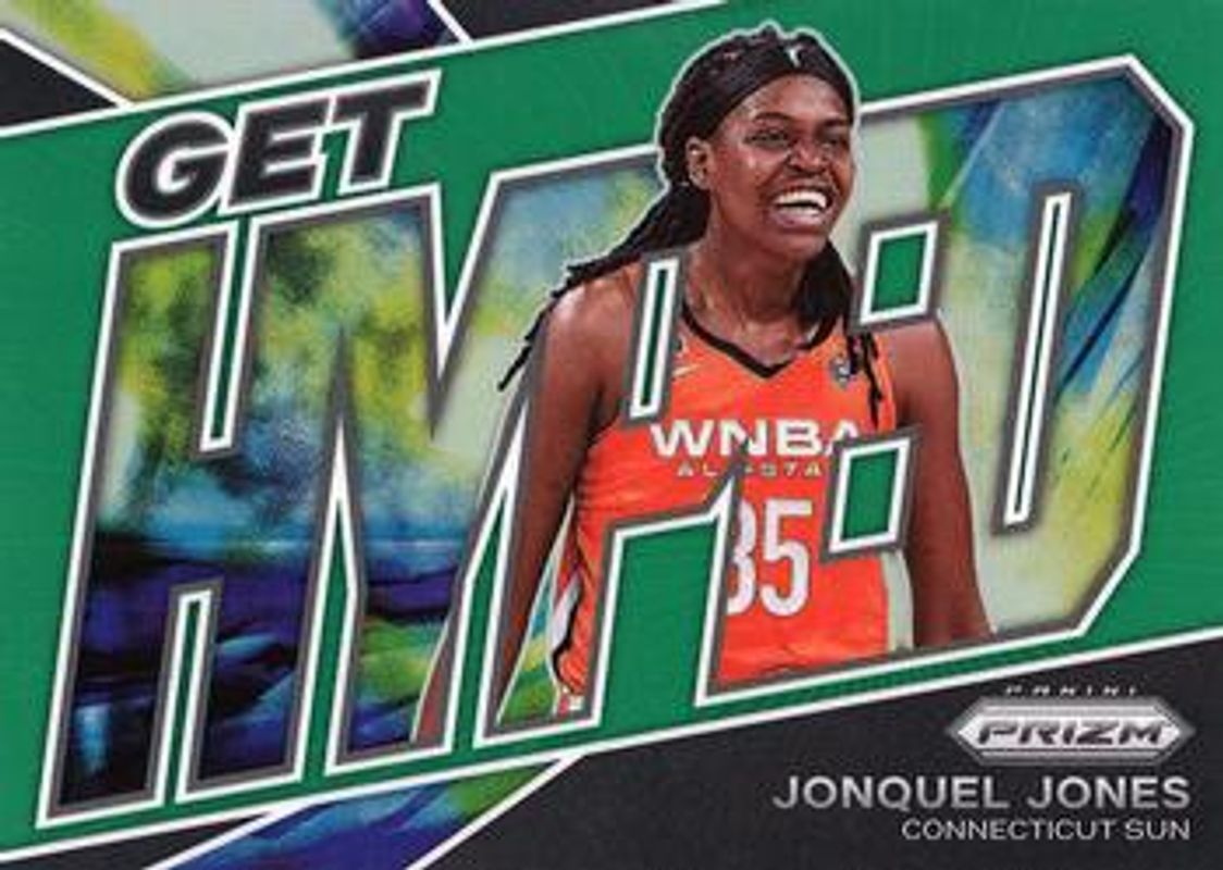 The Jonquel Jones 2022 Prizm WNBA #11 Get Hyped - Green card is 1 of 64 Jonquel Jones' card variations in the 2022 Prizm WNBA set being tracked by Sports Card Investor, including Base, Green, Green Ice, Hyper, and Ice.