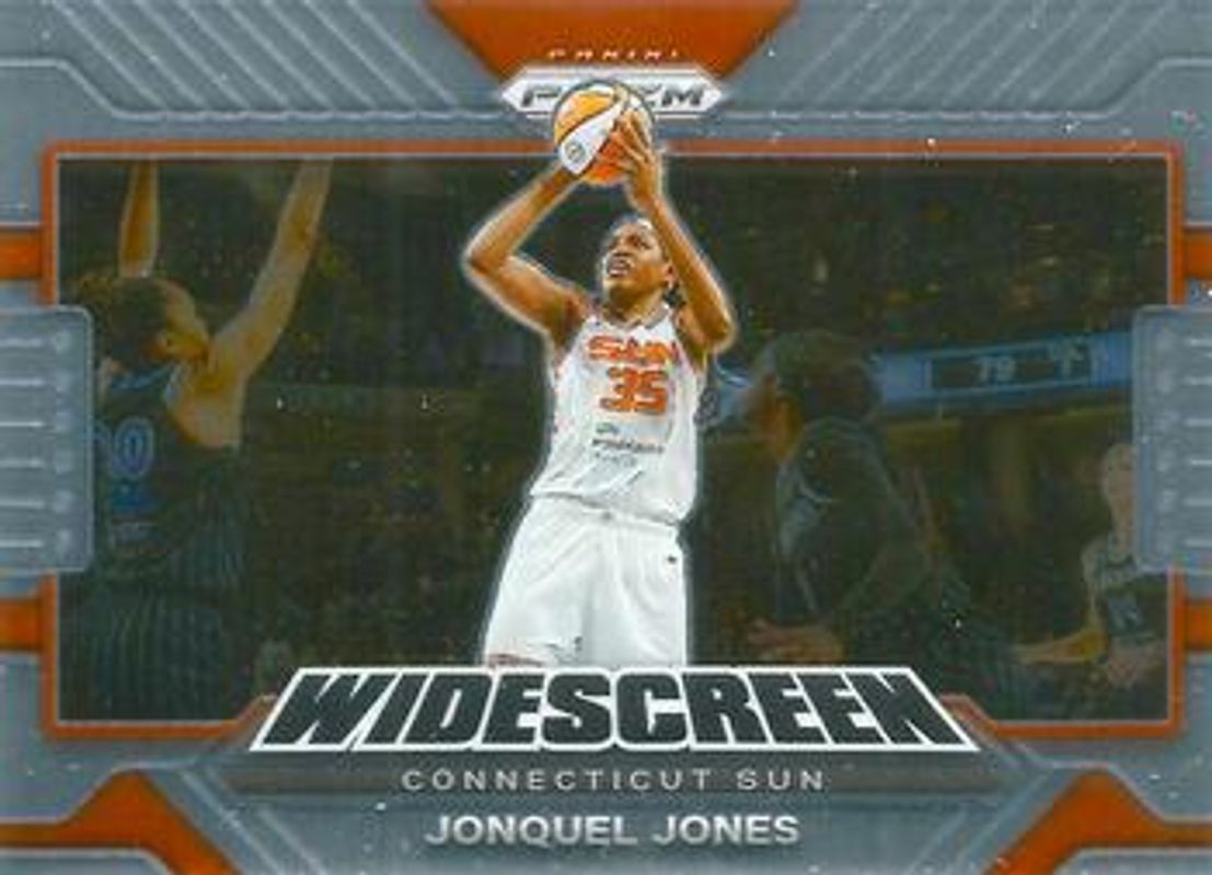The Jonquel Jones 2022 Prizm WNBA #2 Widescreen card is 1 of 64 Jonquel Jones' card variations in the 2022 Prizm WNBA set being tracked by Sports Card Investor, including Base, Green, Green Ice, Hyper, and Ice.