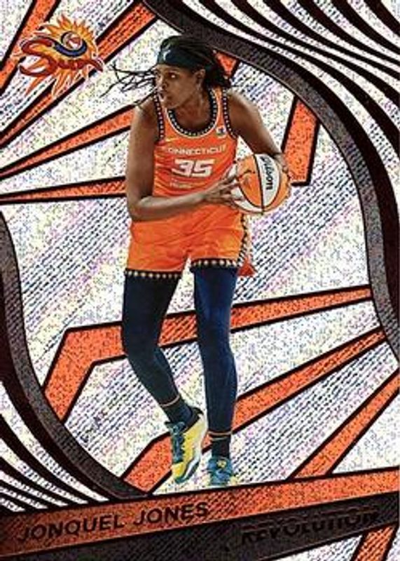 The Jonquel Jones 2022 Revolution WNBA #43 Base card is 1 of 31 Jonquel Jones' card variations in the 2022 Revolution WNBA set being tracked by Sports Card Investor, including Astro, Fractal, Galactic, Groove, and Impact /149.