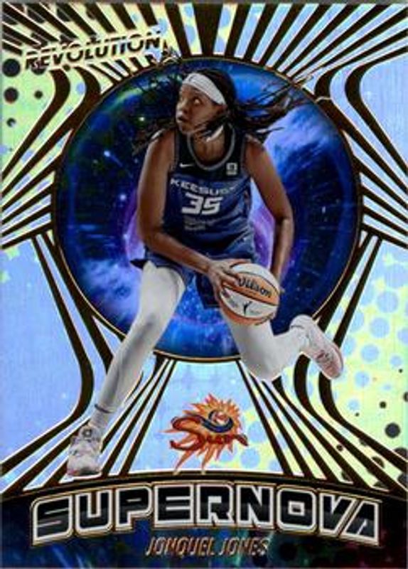 The Jonquel Jones 2022 Revolution WNBA #10 Supernova card is 1 of 31 Jonquel Jones' card variations in the 2022 Revolution WNBA set being tracked by Sports Card Investor, including Base, Astro, Fractal, Galactic, and Groove.
