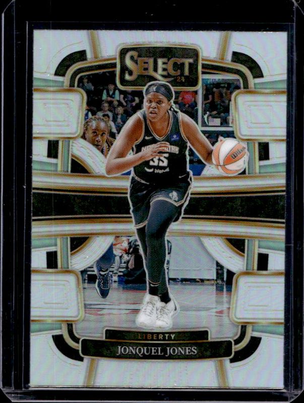 The Jonquel Jones 2024 Select WNBA #14 Base Silver card is 1 of 84 Jonquel Jones' card variations in the 2024 Select WNBA set being tracked by Sports Card Investor, including #239 Base, #14 Base, #166 Base, #14 Base Green Ice, and #166 Base Green Ice.