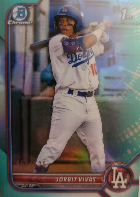 2022 BOWMAN CHROME JORBIT VIVAS AQUA REFRACTOR 100/125 1ST BOWMAN BCP-24 DODGERS