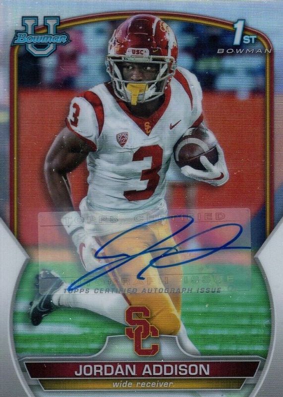 Best Prices Available For Sale of Jordan Addison 2022 Bowman Chrome University #36 Prospect Auto - Refractor /499 (1st)
