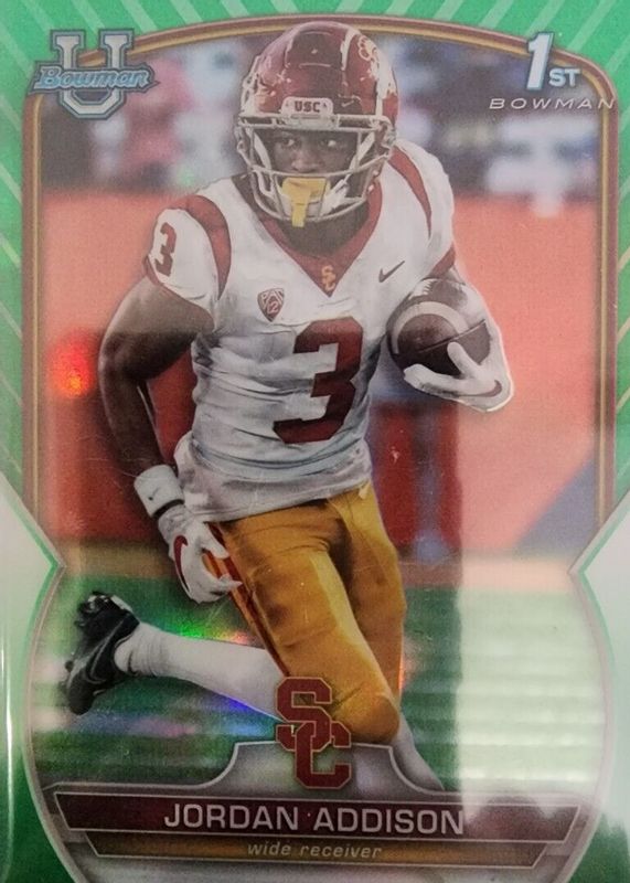 2022 Bowman Chrome University Green Refractor No. 36 Jordan Addison #/99 USC KHH
