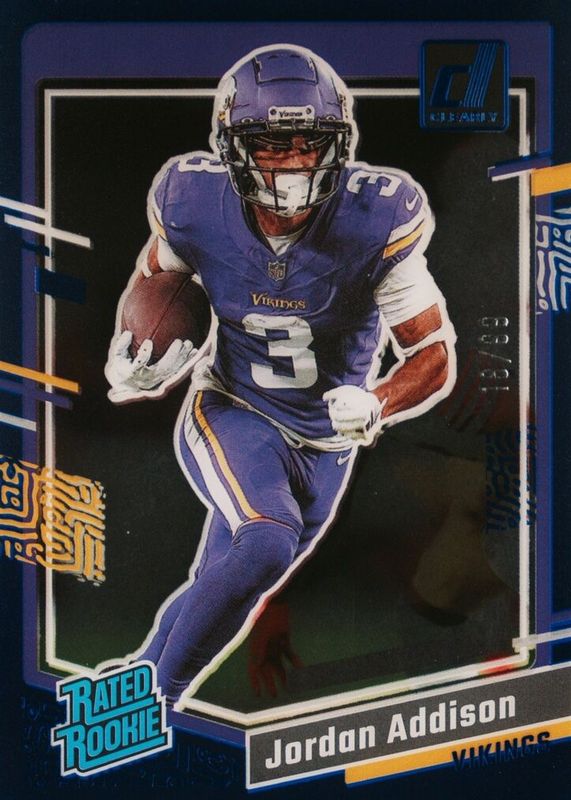 JORDAN ADDISON 2023 CLEARLY DONRUSS RATED ROOKIE BLUE 70/99 VIKINGS RC VIKINGS