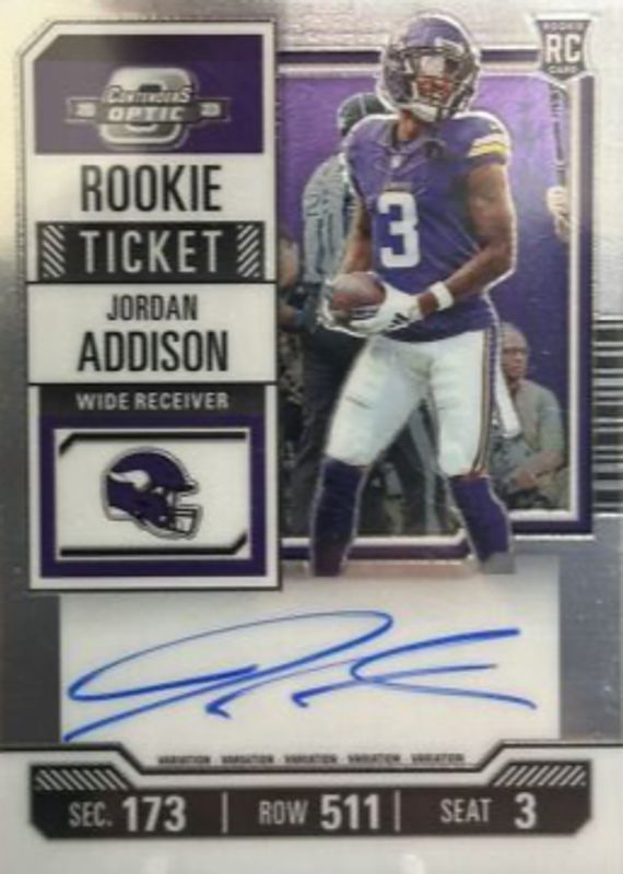 2023 CONTENDERS OPTIC - JORDAN ADDISON ROOKIE TICKET VARIATION RC AUTO