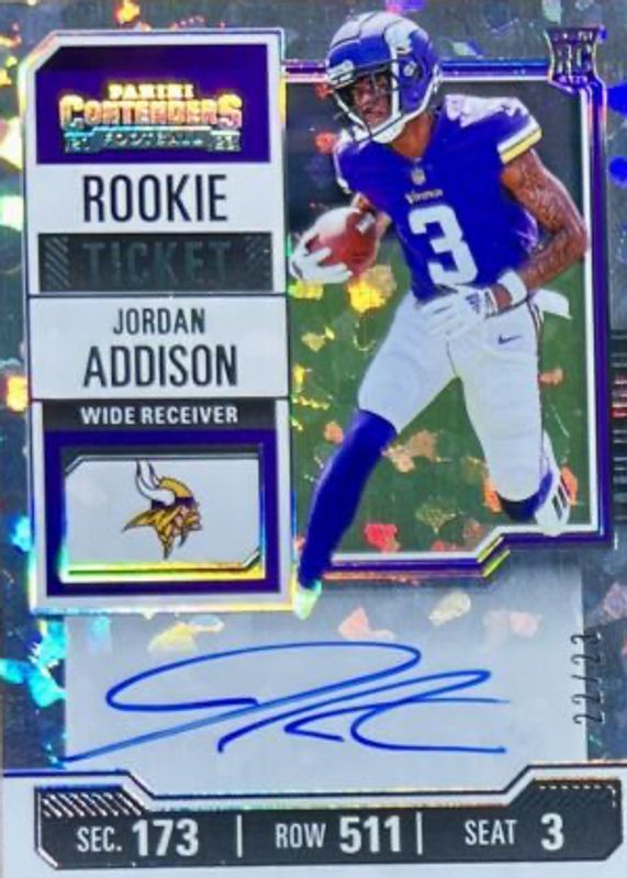 2023 Contenders JORDAN ADDISON CRACKED ICE Rookie Ticket AUTO /23 RC Vikings