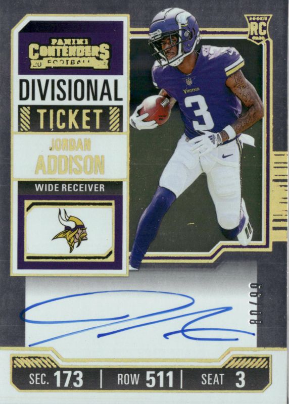 2023 Contenders JORDAN ADDISON Divisional Rookie Ticket AUTO /99 RC Vikings
