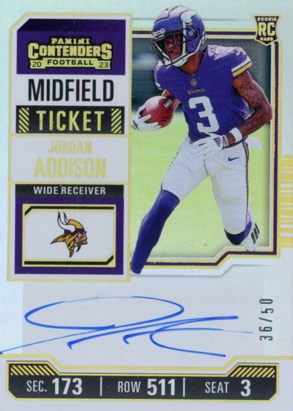 2023 Contenders Jordan Addison RC Midfield Ticket Auto #49/50 Vikings