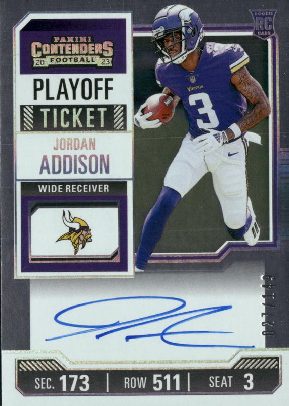 2023 Contenders Playoff Ticket Vikings Jordan Addison AUTO ROOKIE /149