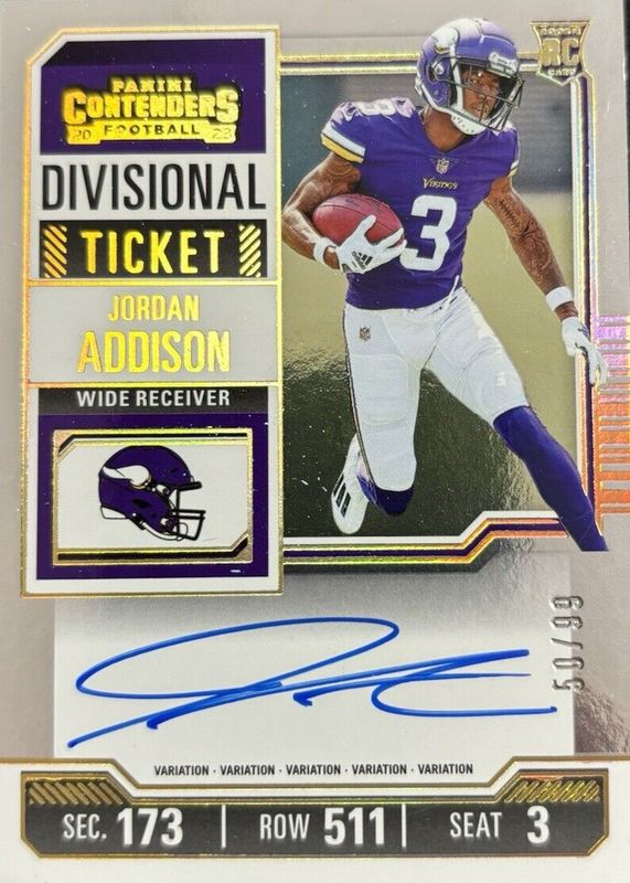 2023 Contenders JORDAN ADDISON RC Divisional Rookie Ticket AUTO Variation 81/99