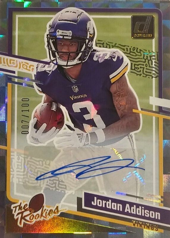 Best Prices Available For Sale of Jordan Addison 2023 Donruss #10 The Rookies Autographs (/100)