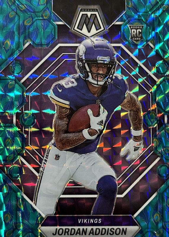 Recent Sales of Jordan Addison 2023 Mosaic #337 Choice Peacock /(SSP) Rookie Raw
